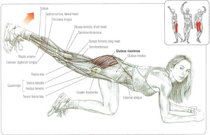 Trabaja principalmente el glúteo mayor y en menor medida el semitendinoso y la porción larga del femoral.